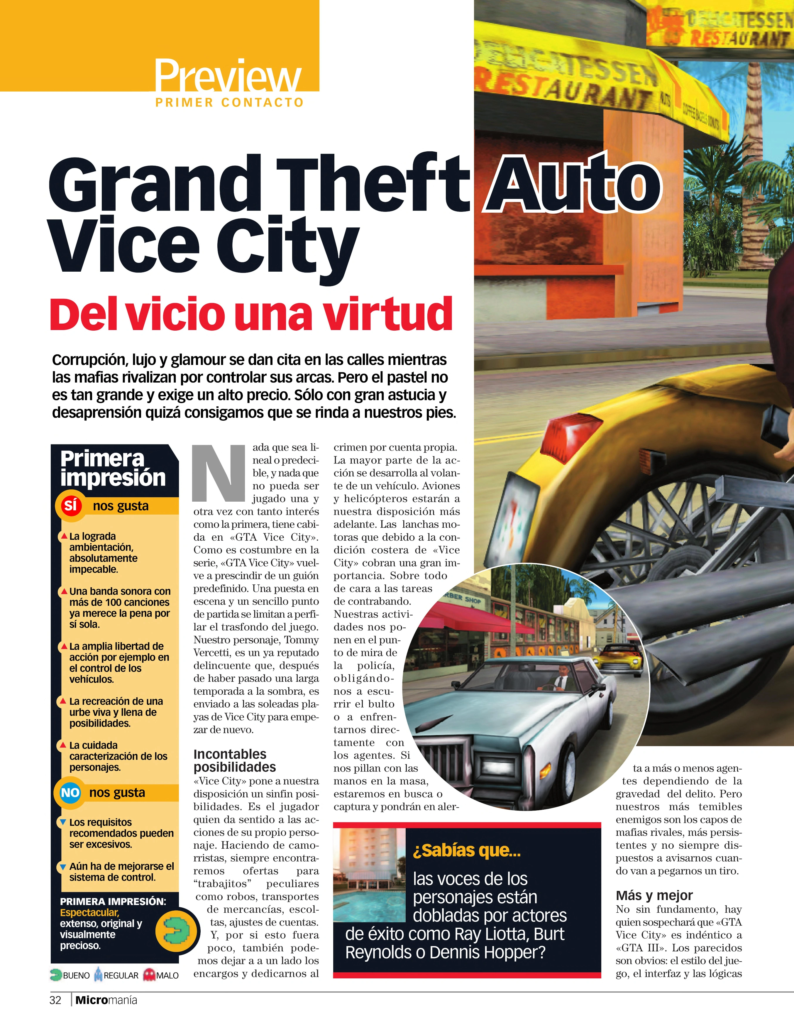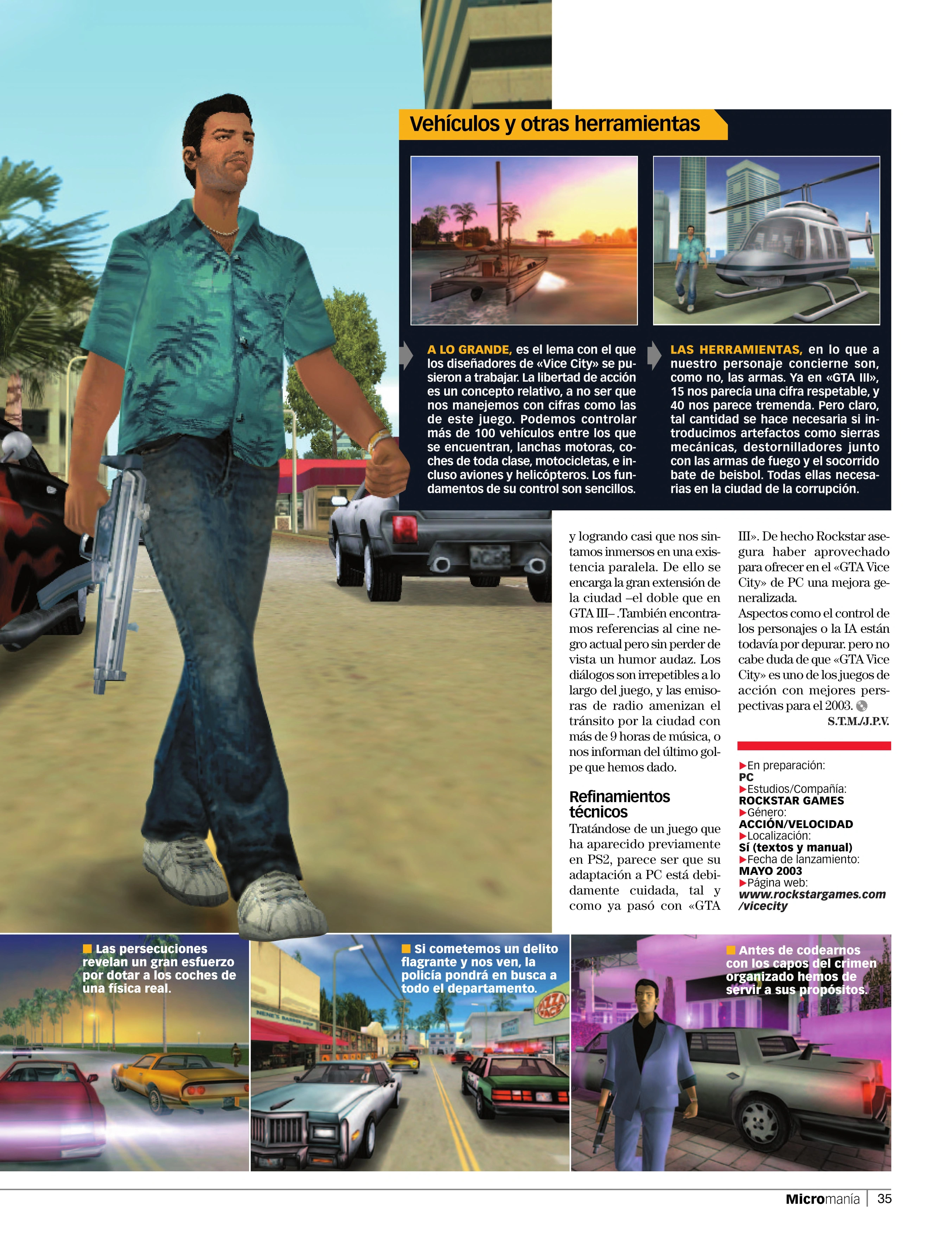 VC Magazine 3 Posted Jan 28, 2019 By 1 min read OLD CONTENT. TO BE TRANSLATED TO ENGLISH. GTA Vice City. Micromanía / Edición 99 / Año 2003, 1 de abril. GTA magazine This post is licensed under CC BY 4.0 by the author. Share